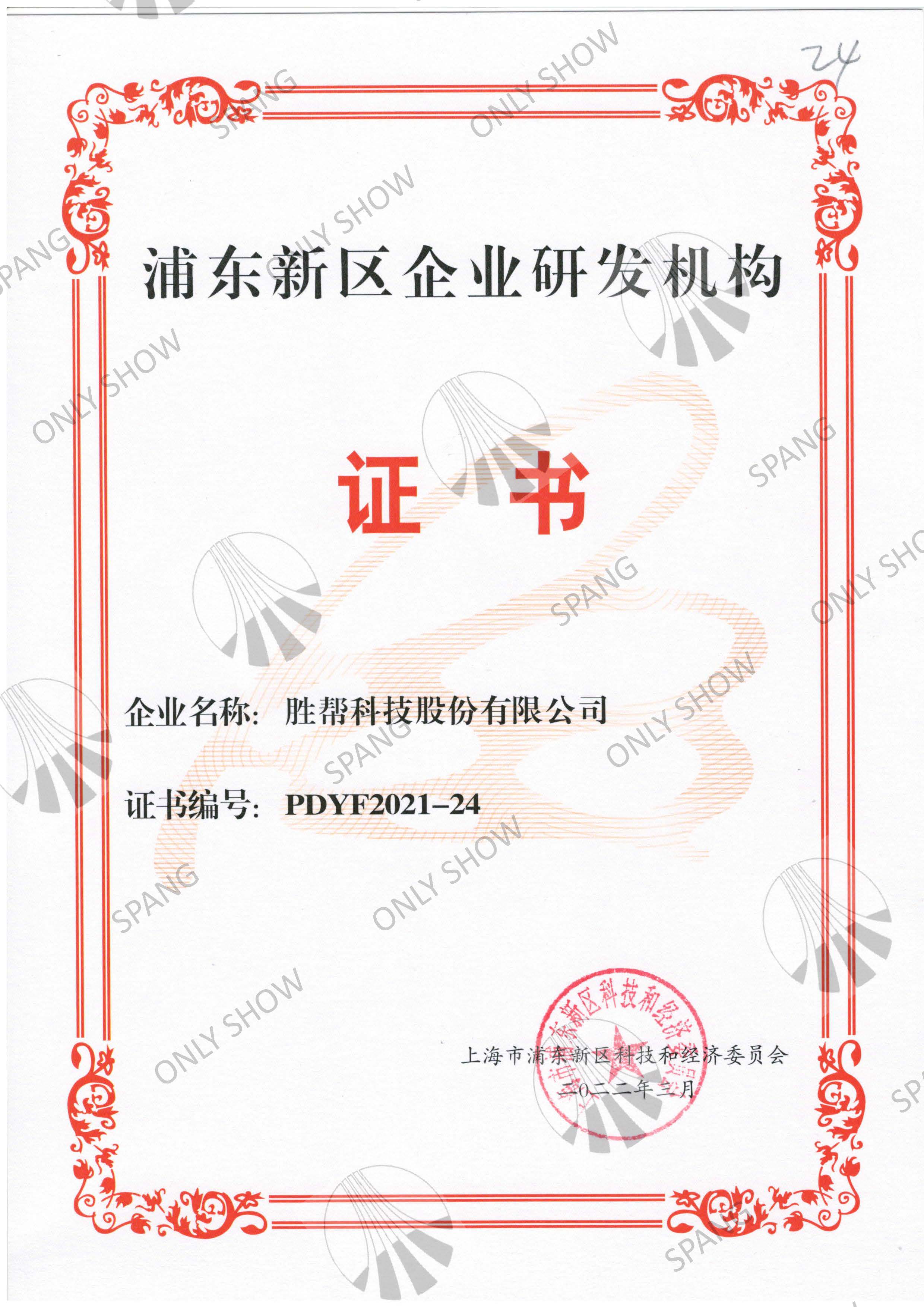 浦東新區(qū)企業(yè)研發(fā)機構(gòu)證書