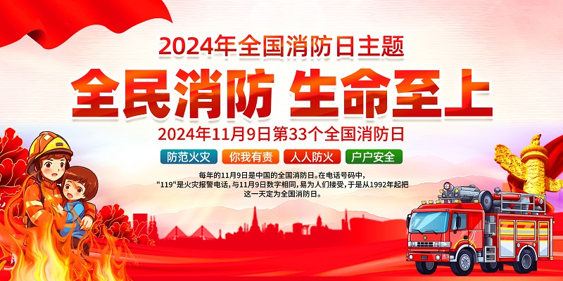 今年11月9日是第33個(gè)全國消防日11月是全國消防宣傳月活動(dòng)主題為全民消防、生命至上