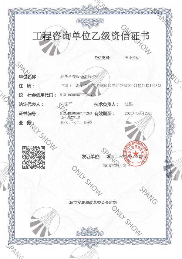 近日,公司獲上海市工程咨詢行業(yè)協(xié)會下發(fā)、上海市發(fā)展和改革委員會監(jiān)制的工程咨詢單位乙級資信證書,該證書的獲得標(biāo)志著公司已順利通過石化、化工、醫(yī)藥專業(yè)的工程咨詢資信評價乙級認(rèn)定。此次是工程咨詢資信評價認(rèn)定改革后的第一次申報,公司能順利通過工程咨詢資信評價認(rèn)定,體現(xiàn)了公司在工程咨詢領(lǐng)域的綜合實力,對公司后續(xù)開展規(guī)劃咨詢和項目咨詢等服務(wù)具有重要意義。