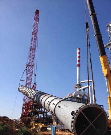 自第一臺設(shè)備進(jìn)場以來,我項目部在業(yè)主、監(jiān)理的正確指導(dǎo)和大力幫助下,大型設(shè)備吊裝工作順利推進(jìn),隨著2014年9月20日“兩塔一罐”(焦化分餾塔、加氫分餾塔、焦化緩沖罐)精確就位,400噸吊車開始退場,預(yù)示著全場大型設(shè)備吊裝工作圓滿結(jié)束。本工程大型設(shè)備數(shù)量多,吊裝工作量大,框架內(nèi)重型高壓設(shè)備復(fù)雜,設(shè)備平面布置緊湊。焦化分餾塔高61米,總計130余噸,吊車占位空間窄小,…