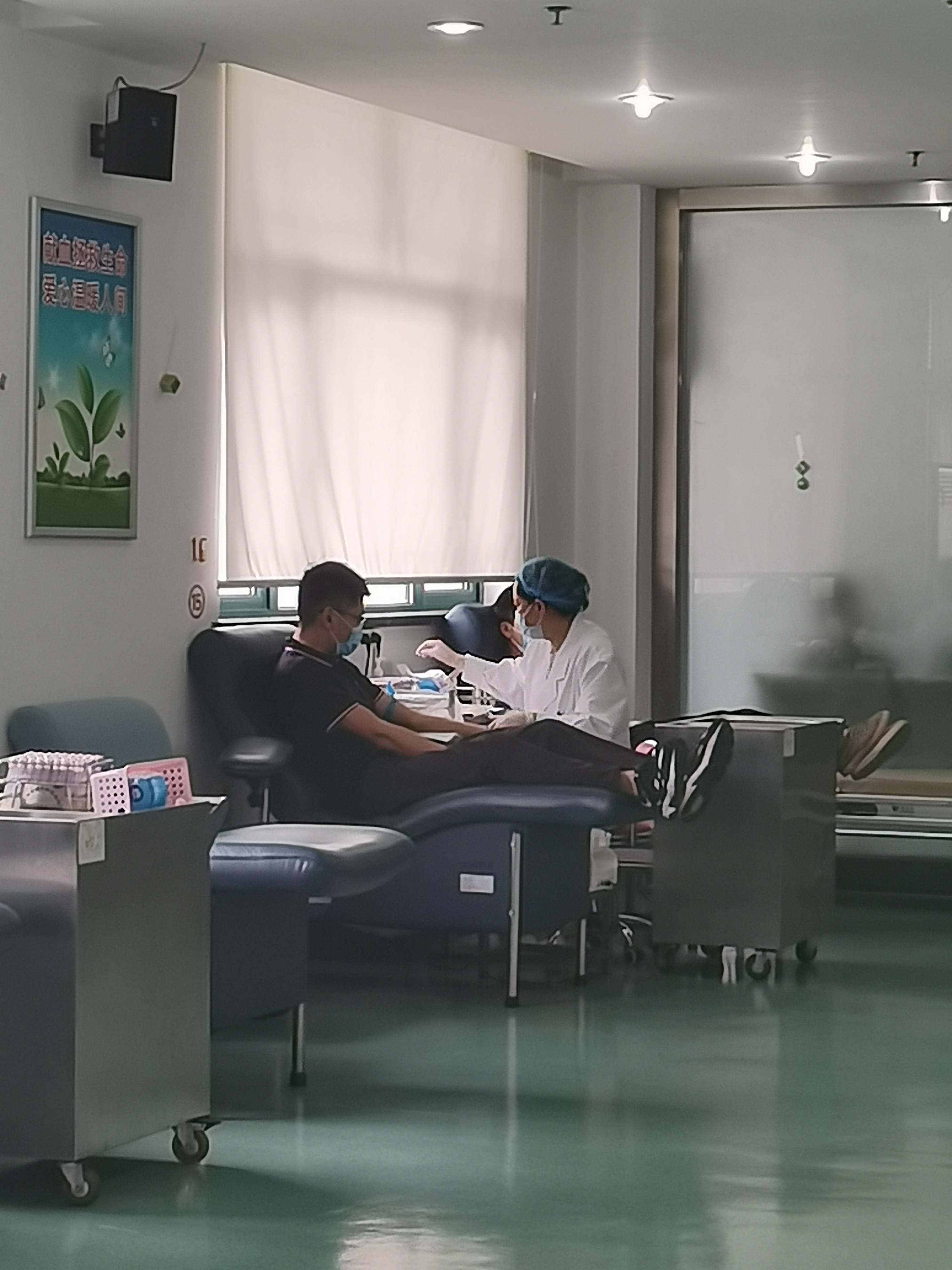 到達獻血站時,門口已經(jīng)排起了長長的隊伍,炎熱的天氣并沒有阻擋大家獻血的熱情。獻血站內(nèi),在醫(yī)護人員的安排下,從登記信息、體檢、驗血,到獻血,一切都井然有序,有條不紊。遺憾的是,也有人因為緊張心跳過快,或者血脂高的原因,無法參與此次的獻血,臉上難掩失落之情。