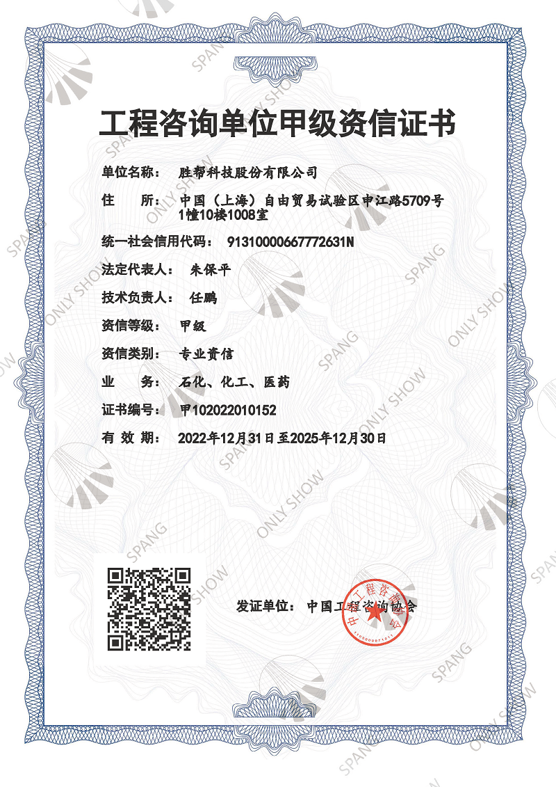 近日,在中國(guó)工程咨詢協(xié)會(huì)組織開展的2022年工程咨詢單位甲級(jí)資信評(píng)價(jià)中,勝幫科技順利通過專家評(píng)審并獲取工程咨詢單位甲級(jí)資信證書,業(yè)務(wù)范圍為石化、化工、醫(yī)藥專業(yè)。此次證書的獲取是勝幫科技自2019年首次獲取甲級(jí)資信證書到期后的續(xù)期申請(qǐng),是對(duì)勝幫科技工程咨詢業(yè)務(wù)能力及從業(yè)人員的充分肯定,標(biāo)志著勝幫科技在工程咨詢業(yè)務(wù)開展中邁向新征程更進(jìn)一步。