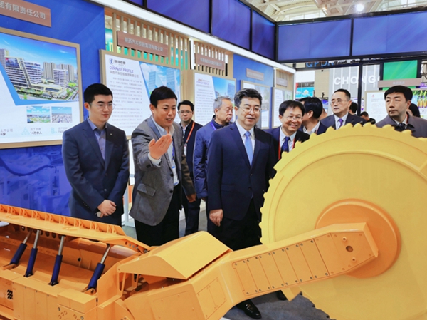 陜西省政府黨組成員陳春江、商務廳黨組書記賈鋒一行到陜西展區(qū)參觀指導。在陜煤集團展位,了解了西安重裝集團西煤機公司自主研制的世界首臺10米超大采高智能化采煤機的主要性能和使用情況。