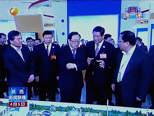 陜西電視臺(tái)4月5日晚陜西新聞聯(lián)播報(bào)道西洽會(huì)開(kāi)幕,圖為領(lǐng)導(dǎo)視察陜煤化集團(tuán)展區(qū)鏡頭