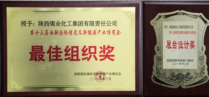 陜煤化集團(tuán)在此次博覽會上積極周密組織參展事宜,精心設(shè)計(jì)展臺布置,展臺氣勢恢宏彰顯了陜煤化自身企業(yè)文化特色,受到大會組委會的肯定和好評,最終獲得最佳組織獎和展臺設(shè)計(jì)獎兩個(gè)獎項(xiàng)。