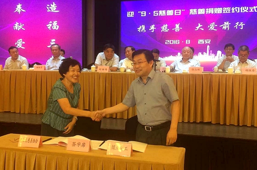 826日下午,陜西省慈善協(xié)會舉行迎“中華慈善日”慈善捐贈集中簽約儀式,陜西省副省長姜鋒、省慈善協(xié)會終身名譽會長徐山林,名譽會長陸棟,省慈善協(xié)會會長劉維隆、省國資委主任胡保存、省民政廳廳長趙正才、省委宣傳部常務副部長劉斌,陜煤化集團董事長、黨委書記楊照乾,常務副總經(jīng)理尤西蒂,總經(jīng)理助理、工會會負責人李向東,以及其他捐贈單位代表出席會議。