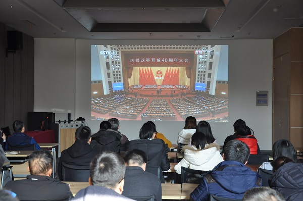 慶祝改革開(kāi)放40周年大會(huì)于12月18日上午在北京人民大會(huì)堂隆重舉行。公司黨委組織全體黨員及中高層領(lǐng)導(dǎo)干部齊聚一樓培訓(xùn)室觀看大會(huì)直播?!捌饋?lái)!不愿做奴隸的人們!……”,隨著振奮人心的國(guó)歌聲響起,大會(huì)拉開(kāi)了序幕。中共中央總書(shū)記、國(guó)家主席、中央軍委主席習(xí)近平出席大會(huì)并發(fā)表重要講話。大家全神貫注、聚精會(huì)神、認(rèn)真聆聽(tīng),共同見(jiàn)證激動(dòng)人心的歷史時(shí)刻。